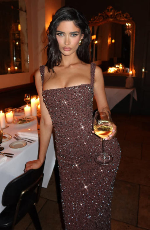 Luxurious chiffon outer layer creates a captivating sparkle.